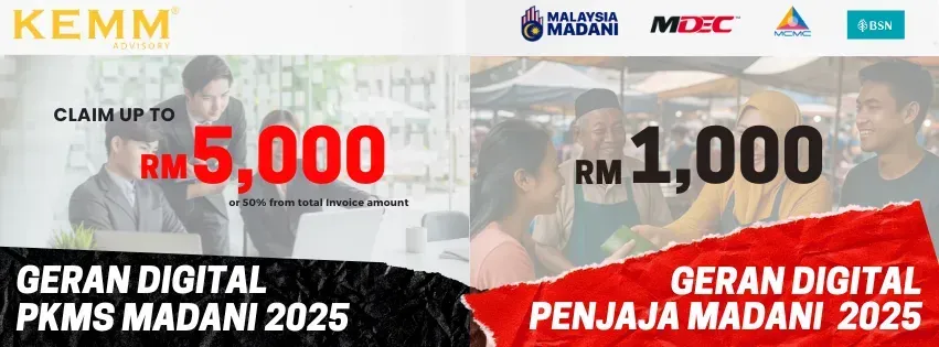 - Geran Digital PMKS MADANI: For micro, small, and medium enterprises. 50% subsidized, capped at RM5,000